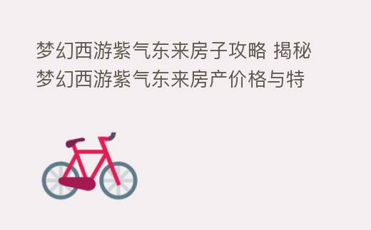 前言:在梦幻西游这款经典游戏中,紫气东来房子无疑是一个充满神秘色彩的梦幻居所。它不仅代表着玩家在游戏中的地位和财富,更是无数玩家梦寐以求的家园。本文将带您深入了解紫气东来房子的来历、玩法以及解决技巧,让您在梦幻全球中拥有一处属于自己的神秘居所。